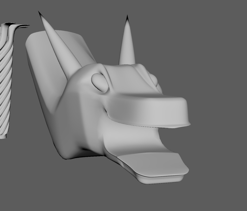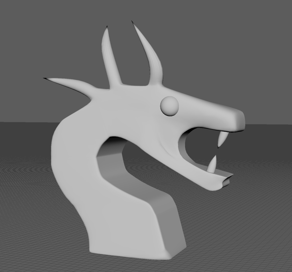 As far as I’m aware these meshes were unsalvageable and at this point I was immensely frustrated as time was quickly running out until the deadline. After doing some research I found the issue was me not deleting my history before exiting Maya and I never made the same mistake again from this point onwards. After taking a day to cool off I came back and started working on a new dragon head. Below are some screenshots from the development of this head.
