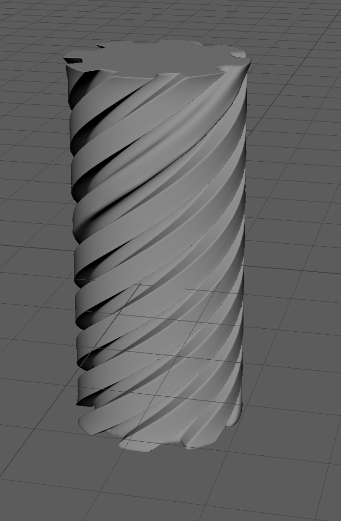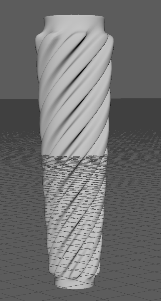 I then manipulated the vertices to cause the handle to start thin and get thicker as it went along and also experimented with support loops to make the eight necks more curved and circular. Eventually I had something like this and at the time was happy with the result.